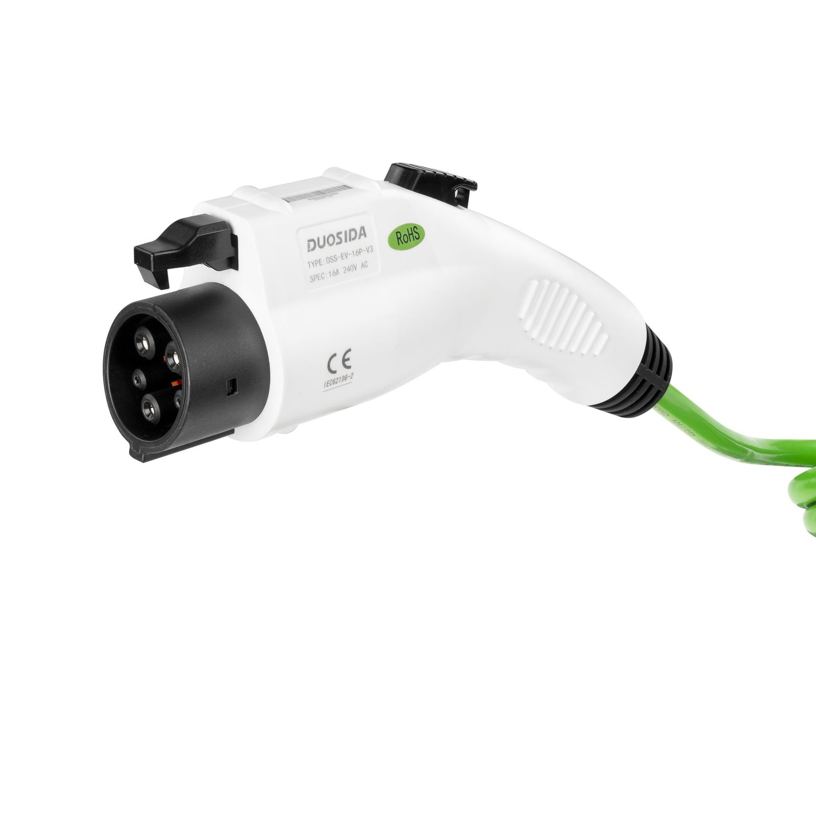 32 A vienfazis įkrovimo kabelis leidžia pasiekti iki 7,2 kW galingumą, o 5 metrų ilgis (darbinis apie 3 m) suteikia optimalų lankstumą be perteklinio laido.